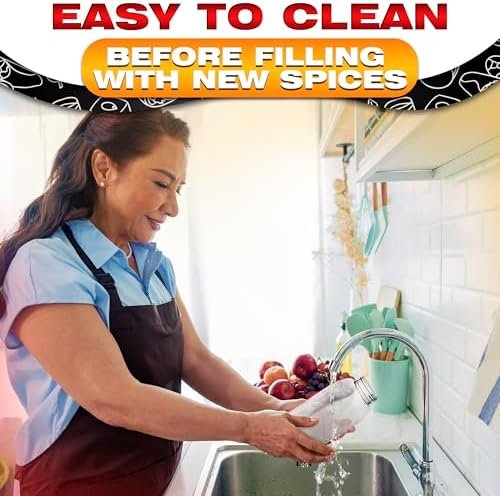 Easy-to-Use Spice Containers with Lids: Each spice jar features a two-sided flip-top lid for easy shaking. The removable seal keeps seasonings fresh, making these jars perfect for long-term storage.