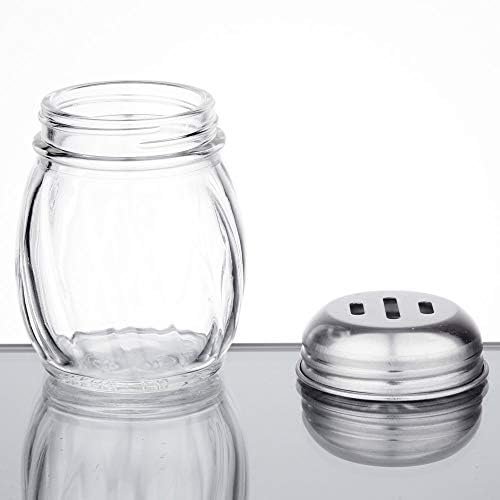 6-Ounces Glass Spices Shaker With Perforated Stainless Steel Top And Parmesan Cheese Shaker With Slotted Stainless Steel Top/Set of 2/Bulk Swirl Retro Style Dispensers With Lids/Salt & Pepper Shakers