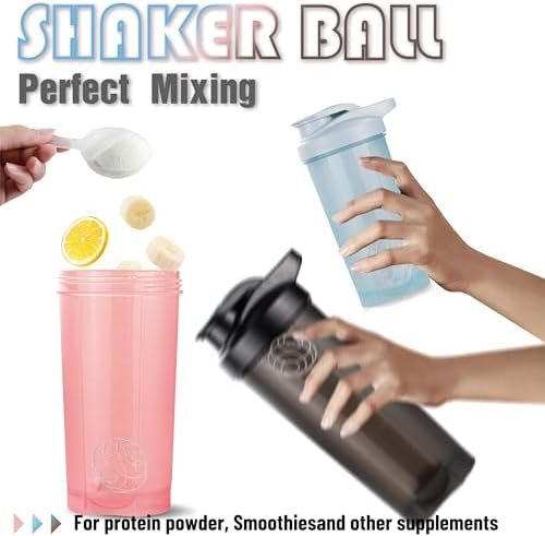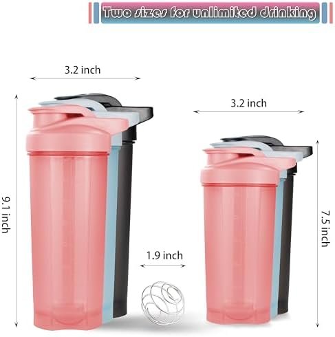 6 Pack Protein Shaker Bottles for Protein Mixes, Shaker Cups for Protein Shakes, 3 pcs 24 oz and 3 pcs 20 oz (Multicolor)
