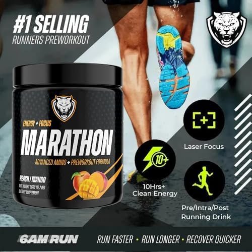 Be the first to review “6AM Run Marathon, Pre Workout Powder for Distance Running, High Energy Amino Formula, for Cardio and Stamina, No Jitters, All Natural, Keto, Vegan, Peach Mango Flavor, 40 Servings”