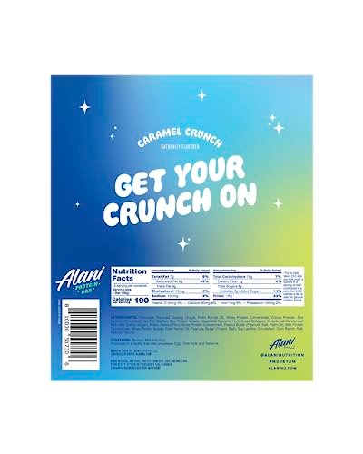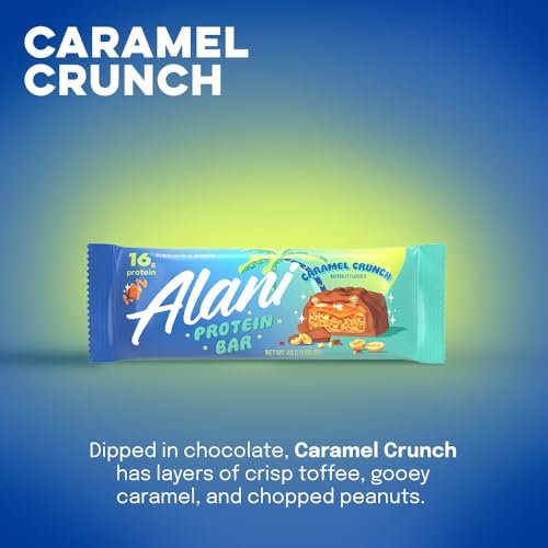 CRAVABLE FLAVORS: Stuck on smarter snacking? Us too! Our chewy Caramel Crunch Alani Protein Bars are gluten free and packed with 16g of protein, 190 calories and 8g of sugar. Made with a gooey, melt-in-your-mouth caramel center, we top each treat with salty peanuts and sweet chocolate. CONTAINS: Peanut, Milk and soy. Produced in a facility that also processes Egg, Tree Nuts and Sesame.