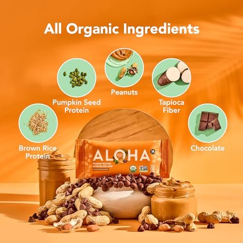 ALOHA Organic Plant Based Protein Bars |Peanut Butter Chocolate Chip | 1.98 Oz (Pack of 12) | Vegan, Low Sugar, Gluten Free, Paleo, Low Carb, Non-GMO, Stevia Free, Soy Free, No Sugar Alcohols