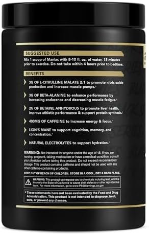 Improves Athletic Performance* – Whether you are a pro athlete or just joining a gym, Maniac has what you need to take your performance to the next level. This comprehensive pre-workout blend contains 2G of Betaine Anhydrous. This key ingredient supports liver health, improves athletic performance, and improves protein synthesis.*