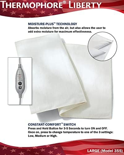 Assembled in The USA – Thermophore Liberty 2 Plus – Moist Heating pad for Arthritis, Back, Neck, Shoulder Pain and Cramps Relief – Electric, 3 Temperature Settings with auto Shut Off, Large 14″ x 27″