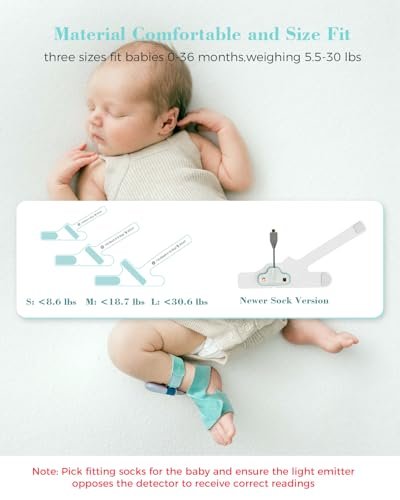 Babytone Sleep Sock, Smart Baby Sock Monitor Tracking Heart Rate, Oxygen Level and Movement, Wearable Infant Foot Monitor with APP Bluetooth for 0-36 Months Newborn