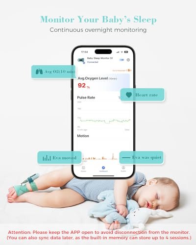 【Track Your Baby’s Sleep】The Baby Sleep Monitor tracks your baby’s heart rate, movement, and oxygen levels, helping you better know their sleep