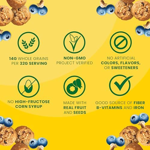 Morning snack containing 14 grams of whole grain and 4.5 grams of total fat per serving; good source of fiber, iron, and B vitamins