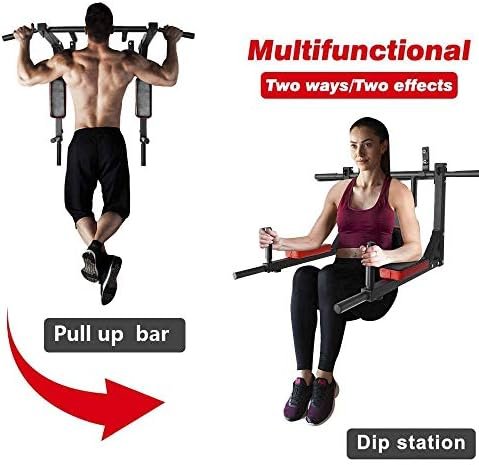 Multifunctional Fitness Machine: Wall mount pull up and dip bar can support many kinds of sport exercise like pull ups, chin ups, dip station, leg raises and boxing. Perfect for exercising your backs, shoulder, chest, arms, triceps, biceps, lats, and the front of your abs