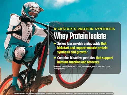 Whey Protein Isolate: Whey protein isolate is loaded with leucine, rapidly absorbed, and enhances muscle protein synthesis quickly. Tipton K (2004), Tang J (2009), Boirie Y (1997), West D (2011), Tang J (2009), Pennings B (2012)*