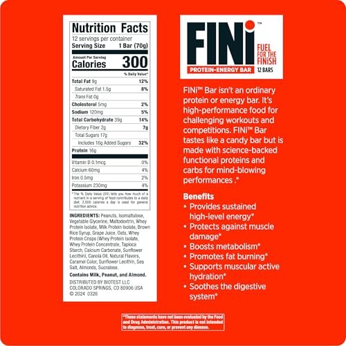Biotest FINi Protein-Energy Bar – Fueled with Performance Sweetener (12 Count, Peanut Butter)