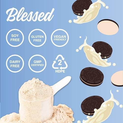 Blessed Vegan Protein Powder – Plant Based Protein Powder Meal Replacement Protein Shake, 23g of Pea Protein Powder, Dairy Free, Gluten Free, Soy Free, No Sugar Added, 30 Servings (Cookies & Cream)
