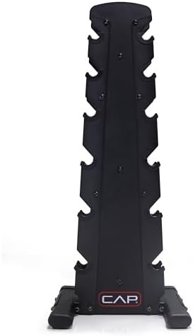 Holds 210 pounds – Designed to hold 6 pairs of CAP Bbarbell hex or rubber hex dumbbells ranging from 5 to 30 pounds; Mix and match your dumbbells to fit this rack, up to 35 pounds pairs; Some combinations may not fit