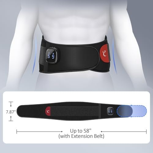 Adjustable Size: The wearable heating pad features dual straps for a customizable fit around your waist which brings warmer relief and intense vibration. Additionally, our heated waist belt includes an extra extension strap that fits up to a 58″ waist.
