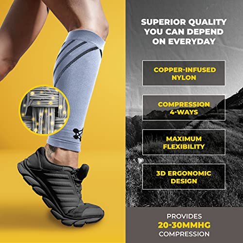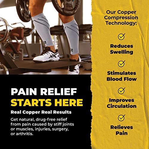 CopperJoint Running Calf Compression Sleeve Women – Easy-On Footless Calf Compression Sleeves for Men, Support Mens Leg Sleeves for Runners, Basketball, Sports, Copper Infused Nylon – Grey, Large