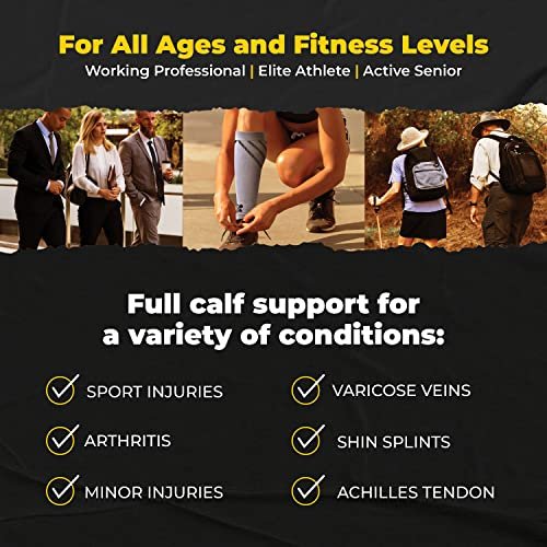 SUITABLE FOR ACTIVE LIFESTYLES AND WORK ROUTINES: Whether you need a compression sleeve leg for intense workouts or a compression calf sleeve women use for work, these sleeves integrate into any routine. Designed for runners, athletes, nurses, and workers on their feet, they provide continuous compression. From calf sleeves for runners to calf support for men, they offer a breathable, non-restrictive feel that moves with you throughout the day.