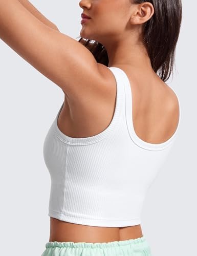 CRZ YOGA Womens Ribbed Longline Sports Bra – U Neck Padded Yoga Cami Workout Crop Tank Top Built in Pads