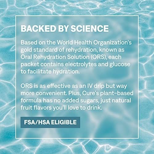 RAPID ABSORPTION: Based on the World Health Organization’s gold standard of rehydration, known as Oral Rehydration Solution, each packet of Cure contains electrolytes and glucose to facilitate rapid hydration directly into your bloodstream. ORS is as effective as an IV drip, but way more convenient.