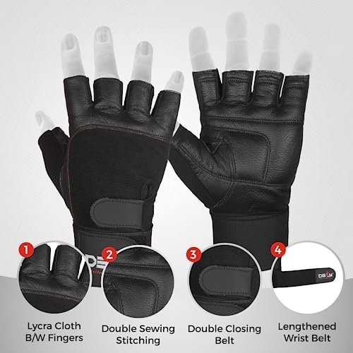 DEFY Padded Weight Lifting Gloves with 13″ Long Wrist Wrap Genuine Leather Gym Gloves for Power Lifting, Cross Training, Workout Black