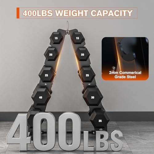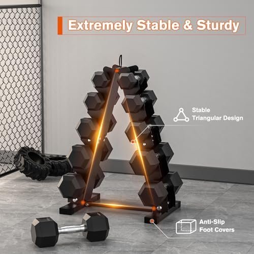 【Supports Up to 400 Pounds】Featuring a sturdy triangular design, this dumbbell rack can hold up to 400 pounds, ensuring a safe and reliable storage solution for your weights.
