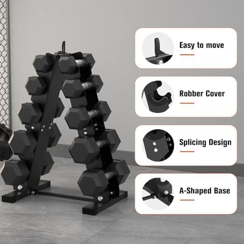 【Durable and Reliable】Made from high-quality steel tubing with a black powder coat finish, this dumbbell rack is built to last. Rubber inserts protect both the dumbbells and the rack from scratches, while rubber-covered feet prevent damage to your floors.