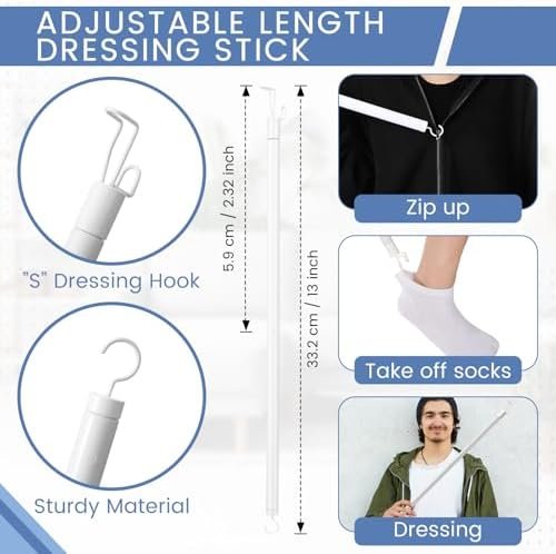 Adjustable Length for Easy Dressing: our dressing stick for elderly can be separated into 2 pieces, and the length can be adjusted by rotating, which can be applied as a considerate gift for helping individuals with a reduced range of motion dress and those who have difficulty bending down