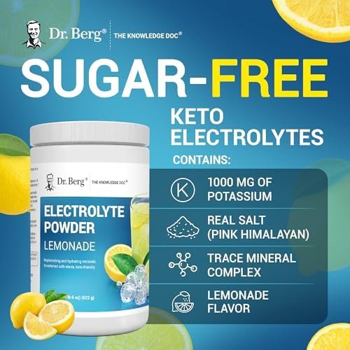 Dr. Berg Zero Sugar Hydration Keto Electrolyte Powder – Enhanced w/ 1000 mg of Potassium & Real Pink Himalayan Salt (NOT Table Salt) – Lemonade Flavor Hydration Drink Mix Supplement – 100 Servings