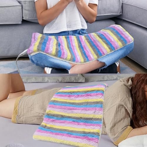 Electric Heating Pad for Back/Waist/Abdomen/Shoulder/Neck Pain and Cramps Relief – 12 Heat Levels, 8 Timers,Cute Plush Heat Pad, Holiday Gifts for Girls, Machine Washable-Rainbow-F(12″ x 24″)