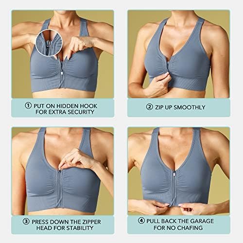 Evercute Zip Front Post-Surgery Bra Women’s Wireless Sports Bras Padded Strappy Medium Support Yoga Exercise Athletic Bras