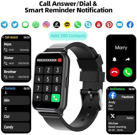 【Make and Answer Phone Calls】 The fitness tracker watch is featured advanced Bluetooth call functionality, you can effortlessly make and answer calls directly from your wrist, keeping you connected while on the go. Stay updated with instant notification alerts for messages, ensuring you never miss an important communication during your workouts or busy days.