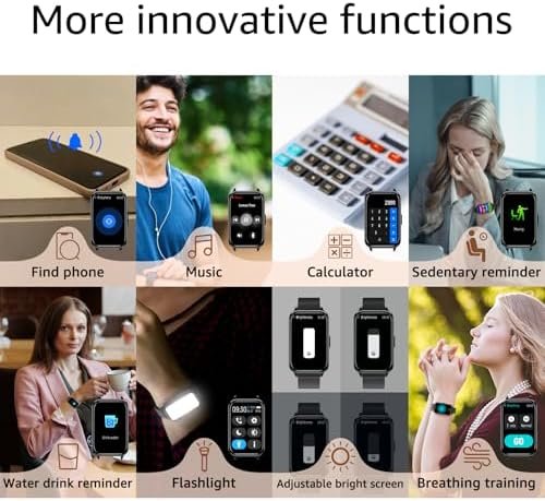 【Your Personal Life Assistant】The smart watch fitness tracker is equipped with rich functions, such as Weather Forecasts, Stopwatch, Timer, Music Control, Brightness Adjustment, Flashlight, Find Phone, Alarm clock, Camera Control, Calculator, Dringking Water Reminder, Sedentary Reminder, Don’t Disturb Mode. These functions can make your life convenient and joyful.