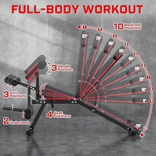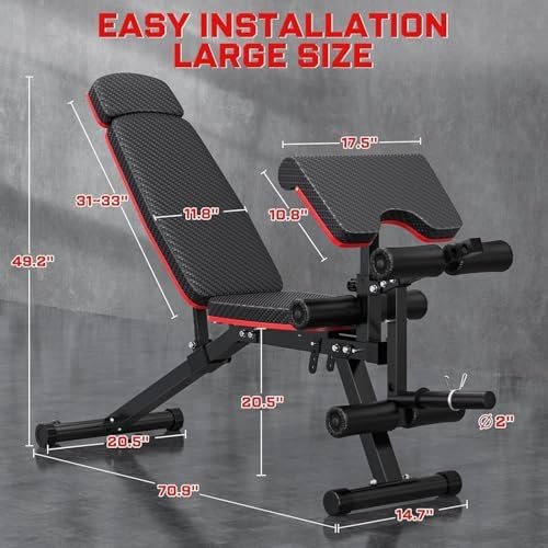 Fostoy Adjustable Weight Bench, 800 LBS Home Gym Workout Bench with Leg Extension and Preacher Pad for Full Body Strength Training, Incline Decline Flat Bench Press for Weight Lifting