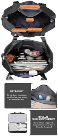 Dry and Wet Separation: The travel duffle bag is made of waterproof material, the dry and wet separation bag can help you separate dry and wet items, if you have wet clothes or towels, you can put them in the wet bag