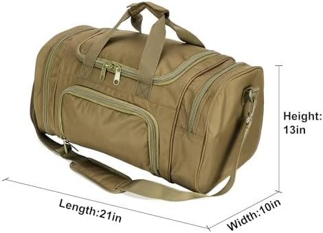 👟The military duffel bag with 21”*10”*13” and 45L. The bag is made of 600 denier polyester lined with PVC and waterproof,wearable and durable.Model B has MOLLE SYSTEM on the side. There are two larger bags on both sides of Model A.