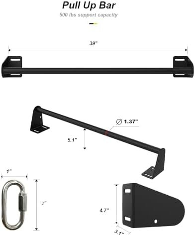 This sturdy and dependable pull-up bar is made from 4mm thick alloy steel and features a powder-coated finish, ensuring durability and protection against rust, with a weight capacity of 500 lbs.
