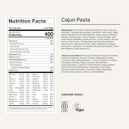 Huel Hot and Savory Cups | Cajun Pasta | 25g Protein Plant Based Instant Meal | 27 Vitamins and Minerals | 100% Nutritionally Complete | 8 Cups
