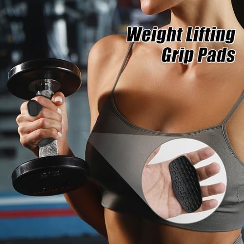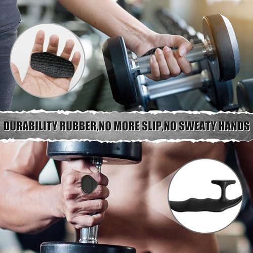 Hysenm Rubber Gym Grips for Men Women, Anti-Slip Workout Grips Fingerless Workout Gym Gloves Pull Up Grips No Sweaty, Hand Protection Grips for Gym Training and Exercise, Bar Pad, Deadlifts (Pair)