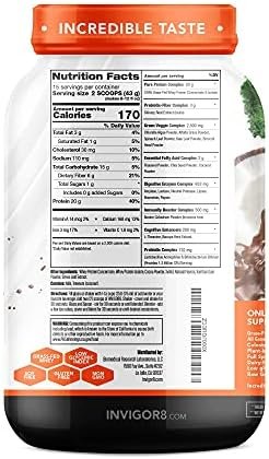 INVIGOR8 Superfood Grass Fed Whey Protein Isolate Shake Chocolate Brownie Gluten-Free and Non GMO Meal Replacement with Probiotics and Omega 3 (645g)