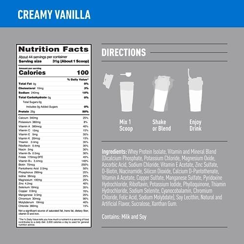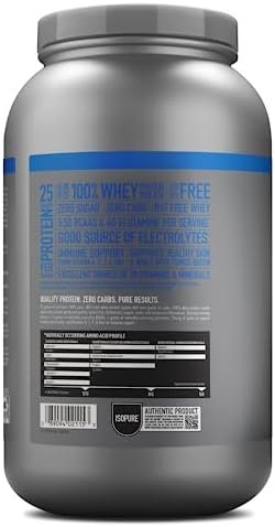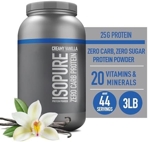Isopure Zero Carb 100% Pure Whey Isolate Protein Powder, Lactose Free, Gluten Free, With Vitamins, Creamy Vanilla, 25g Protein Per Serving, 3 Lbs, 44 Servings