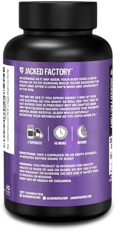 Jacked Factory Lean PM Night Time Fat Burner, Sleep Aid Supplement, & Appetite Suppressant for Men and Women – 60 Stimulant-Free Veggie Weight Loss Diet Pills