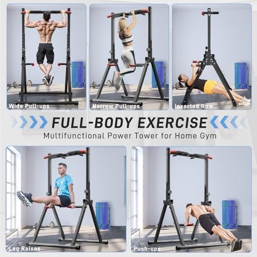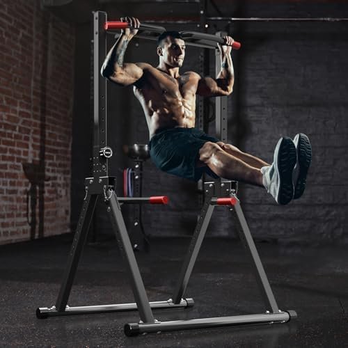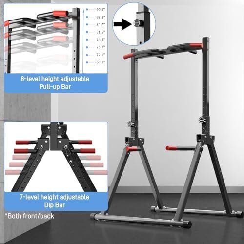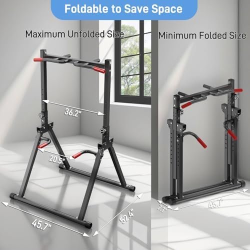 Joppoint Foldable Pull Up Bar Station, Adjustable Multifunction Power Tower Dip Bar Station Home Gym Strength Training Workout Equipment for Pull-up Push-up Dips