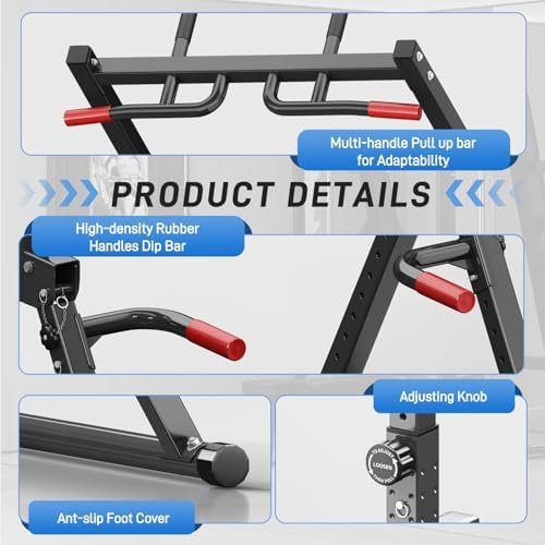 【Full-Body Exercise】Equipped with different grip positions (wide, narrow and parallel) and adjustable dip handles position, this pull up station can support a varied workout, pull-ups, knee raises, dips, push-ups, inverted rows, and so on. Great exercise partner for targeting different muscle groups.