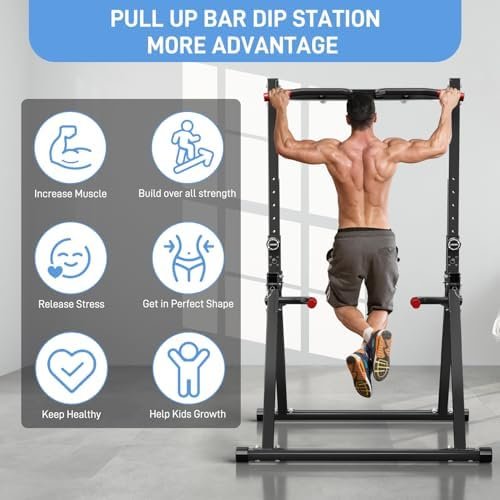 【Adjustable Heights and Handles】The dip station has 8-levels adjustable pullup heights and 7-levels adjustable dip handles positions. Easy to adjust for personalized workouts. Ideal gym equipment for your whole family use indoor or outdoor.