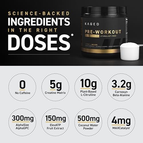 Kaged Pre Workout Powder Pre-Workout Elite Stim-Free for Men & Women, Power, Stamina, Focus, Pumps, L-Citrulline, Beta Alanine, Creatine, Caffeine-Free, Cherry Limeade, 20 Servings