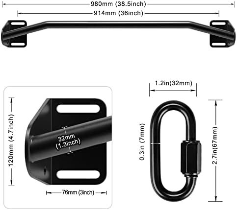 HIGH QUALITY STEEL WITH E-COAT: The Wall Mounted Pull Up Bar is made of heavy steel pipes, with black electrophoretic coatings, excellent durability, ruggedness and corrosion resistance. Pull Up Bar is a full 38.5 inch wide with a grip diameter of 1.3 inch.