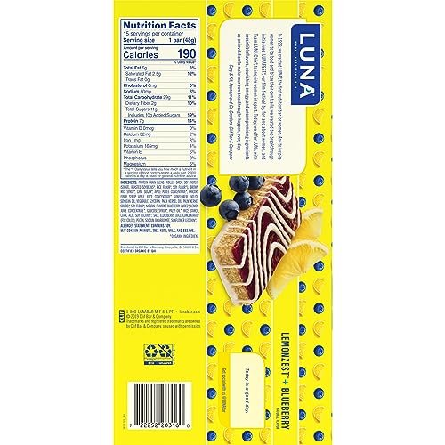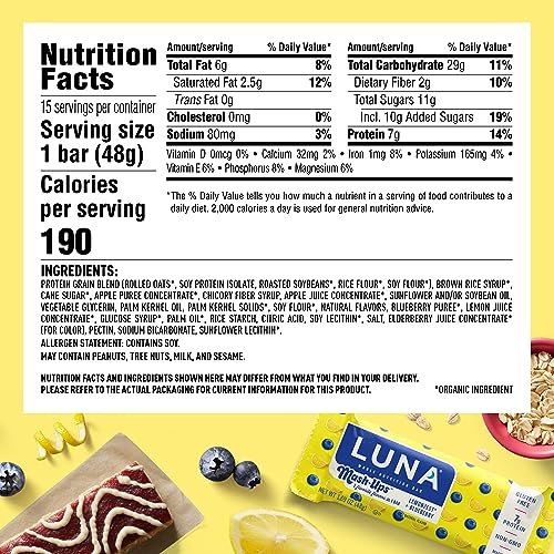 LUNA Bar – Mash-Ups LemonZest + Blueberry Flavor – Snack Bars – Non-GMO – Gluten-Free Protein Bars – Made with Organic Oats (15 Pack)