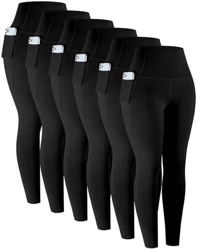 LZYVOO Leggings with Pockets for Women, 6 Packs Soft High Waisted Tummy Control Workout Yoga Pants