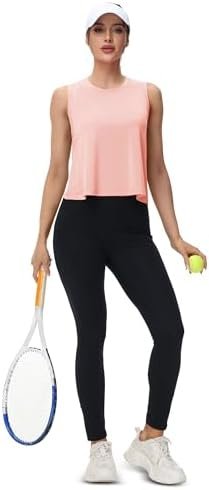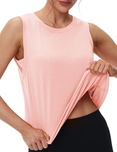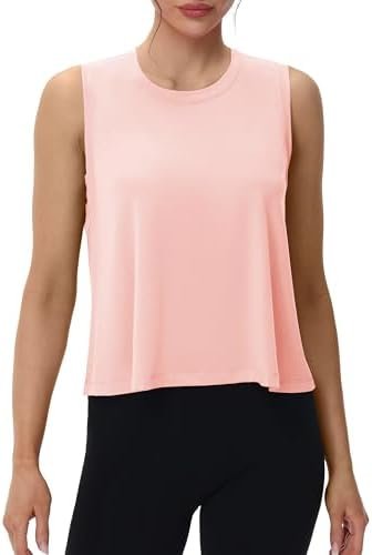 MAGCOMSEN Women’s Workout Tank Tops Crop Sleeveless Athletic Moisture Wicking Loose Fit Summer Shirt