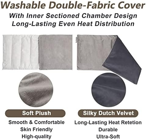 Double-Side Fabric Design: This rice bag heating pad designed with Double-side fabric is skin-friendly even for sensitive users. One side made of Minky is ultra-soft to skin, while the other side made of Dutch Velvet is silky with extra heat retention. Unique sectioned chamber stitching of this neck warmer microwavable heating pad mold into your body flexibly, delivering more even and long-lasting heat for instant pain relief and relaxation.