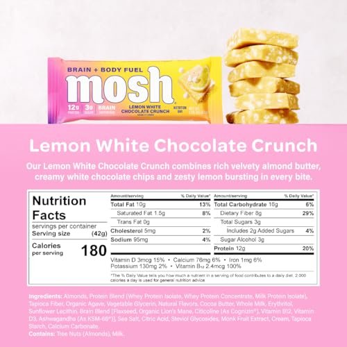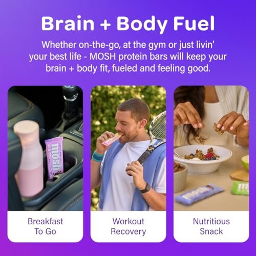 MIND-BLOWING INGREDIENTS – MOSH clean protein bars are loaded with brain-enhancing nutrients like lion’s mane, ashwagandha, omega 3’s, flaxseed, vitamin B12, and D3. Using a science-backed formulation called Cognizin, we provide nutritious and tasty bars for an active and busy lifestyle. They are perfect as a healthy midday snack for kids or a great addition to a college care package.