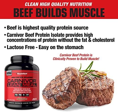 Be the first to review “MuscleMeds CARNIVOR LEAN MEAL whole food meal replacement shake, MRE, beef protein isolate, white potato, sweet potato, 40g protein, 40 g carbs, lactose free, sugar free, Chocolate Fudge 20 servings”